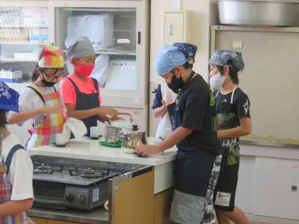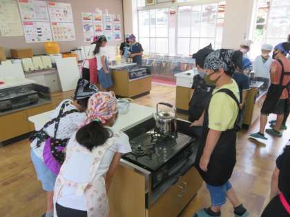 家庭科の学習で調理実習を行いました。お湯を沸かしてお茶を入れる学習です。お茶のいい香りが漂い,「良いにおいする。」と楽しんでいました。