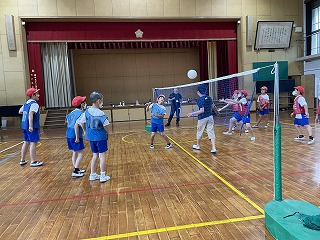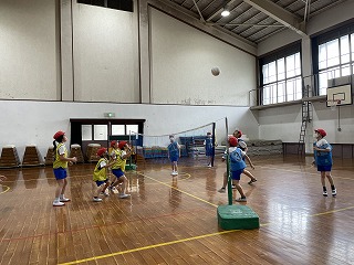 体育では水泳学習と同時並行でソフトバレーボールを行っています。