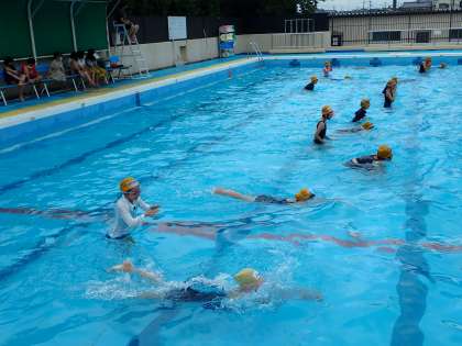 水泳学習が始まりました!2年ぶりにプールに入る子どももいて,とても楽しんでいました。
