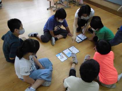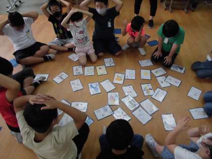 大空の手作りかるたをしました。2年前に作ったもので,4,5年生は自分の作ったものを見つけて喜んでいました。