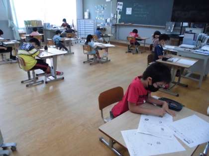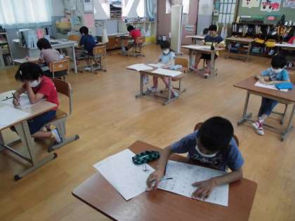 テストと聞くと「がんばるぞー。」と意気込んでいました。みんな集中して取り組むことができました。