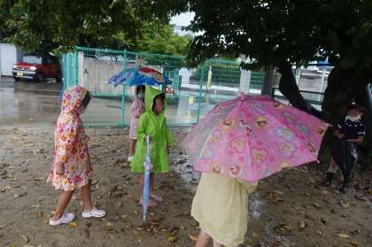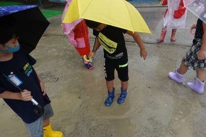 「水たまりにぽちゃんってすると,まるになるよ!」