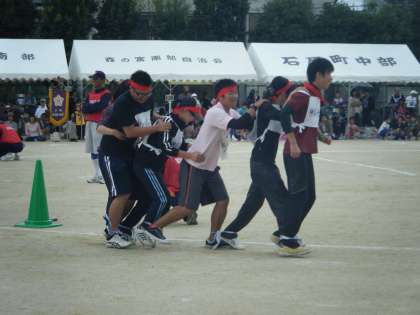 例年,神川小学校として,教職員が団体競技や個人種目に参加させていただいています。昨年は,「むかで競走」と「玉入れ」の2種目を優勝させていただきました。今年は,惜しくも「むかで競走」が準優勝し,あとの競技は予選落ちでした。