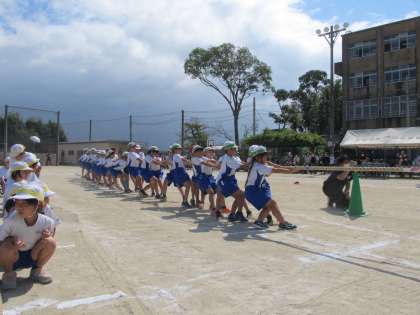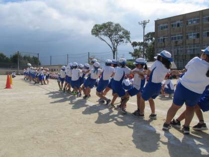 綱引きでは,移動の仕方を練習することが多く,総当たりをしたのは本番が初めてでした。どのクラスも声を出し合って,必死で頑張っていました。