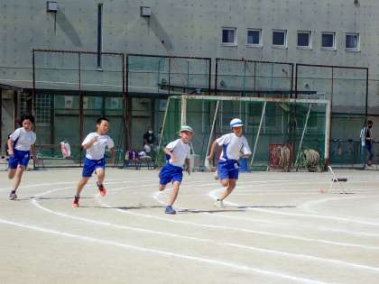 100m走では,一人一人が一生懸命走る,かっこいい姿を見ることができました。