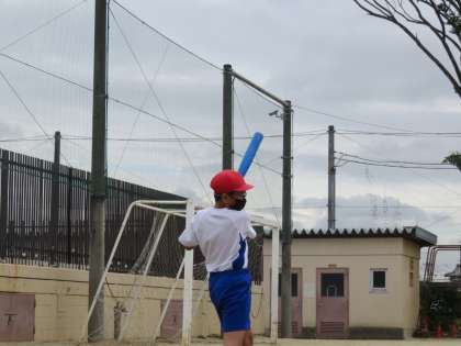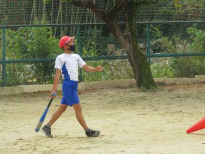 体育では,ベースボールの学習が始まりました。コーンの上にボールを置いてとまった状態のボールを打ちます。ですが,これがなかなか難しく,豪快にコーンを倒してしまうときも・・・。野球のルールも覚えながら楽しく学習に向かっています。