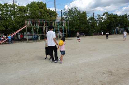 運動場で楽しく遊んでいます。