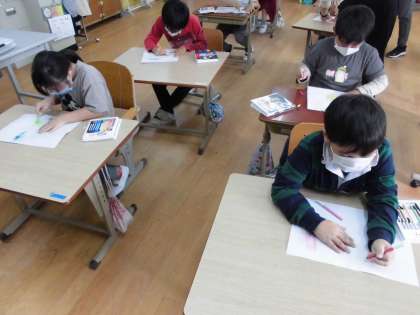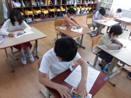 いろいろな形のはっぱを集めて,紙にはっぱの形をこすりだしました。黄色やオレンジに変わっているはっぱもあって秋を感じました。