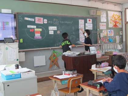 子どもたちは何文字か,なんというアルファベットが入っているかなど,英語でヒントを出しながら楽しんでいました。
