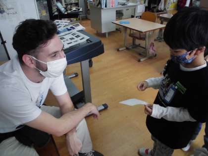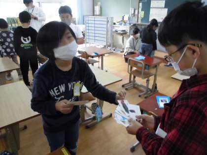 ALTの先生が来てくださって,英語で自己紹介をしました。自分で作った名刺も交換し,みんな楽しんで活動していました。