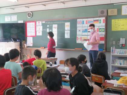 有名な食べ物や場所のヒントをもとに,それがどこの国なのか考える学習をしました。また,カードを使って国名当てカルタをして楽しく学習に取り組むことができました。