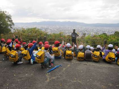 「あそこに京都タワーがある!」!「新幹線も見えた!」「やっぱり京都は山に囲まれてるんだね」