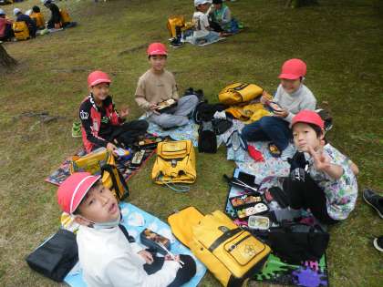 天気にも恵まれ,芝生の上でみんなで食べることができました。
