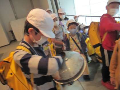 信号機の実物をさわらせてもらう場面では,「中がトゲトゲしてる!」「思ったよりも大きい!」と普段できない体験に喜んでいました。