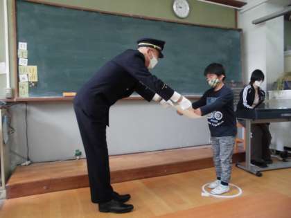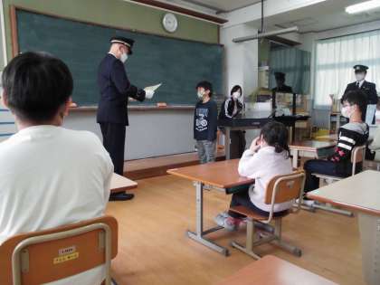 1学期に描いた消防車の絵が入選し,伏見消防署の署長さんが来てくださり,表彰式がありました。「すごいな。」「僕も表彰されたいな。」という声も聞こえてきて,みんなの意欲にもつながったと思います。