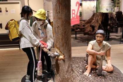 琵琶湖博物館では,琵琶湖の歴史について展示してあるスペースもありました。昔の琵琶湖の近くに住む人々の生活の様子などを,体験などを通して学習していました。