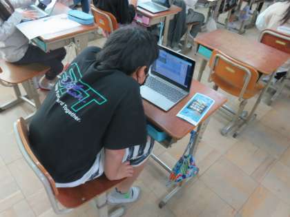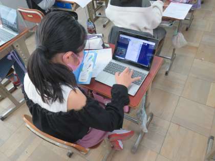 先週,社会見学で行った琵琶湖博物館のことについて,気付いたことや思ったことを中心に新聞にまとめることにしました。GIGA端末を使って,もう一度ホームページを確認したり,パンフレットを見ながら楽しい思い出を振り返っていました。