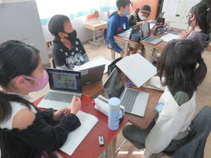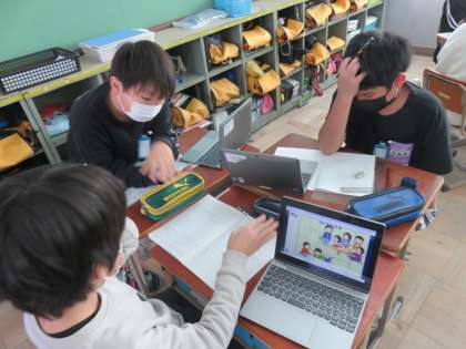 算数では,単位量当たりの大きさの学習をしています。どの部屋のほうが混んでいるのか考えてみました。「ここは,たたみの枚数が同じで,人数が少ないから・・・。」「一人分のたたみの数を考えたらいいのかな。」など,色々と思考を働かせていました。