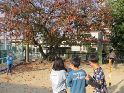 季節と秋では,子どもたちが秋だと感じたものを写真に撮りに行きました。