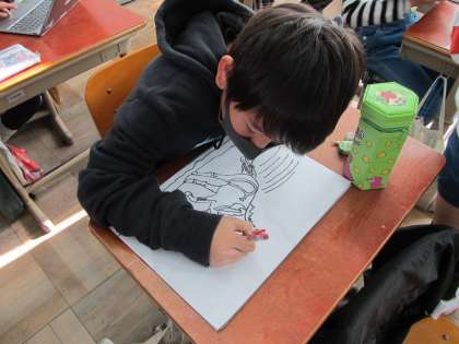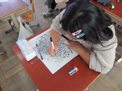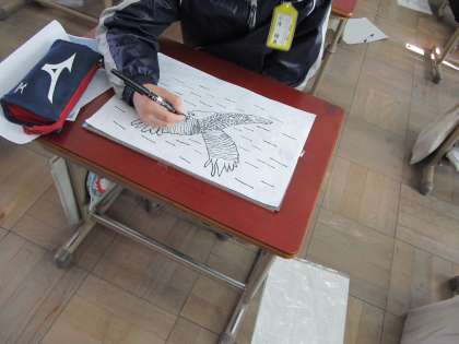今回のテーマは,「生き物」です。魚や鳥,動物など,それぞれが版画にしたい生き物を選んで下絵を描いています。