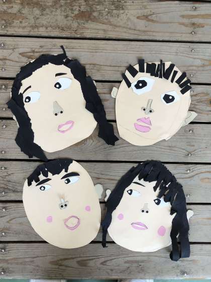 いつもの絵とは違って,紙を貼り合わせることに苦戦していましたが,とても可愛らしい顔が完成しました。