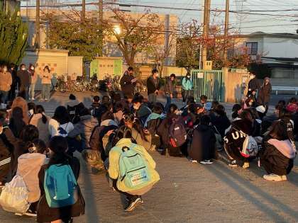 おはようございます!今年一番の寒さになりましたが,素晴らしいお天気に恵まれました。本日,6年生は修学旅行に出発いたします。