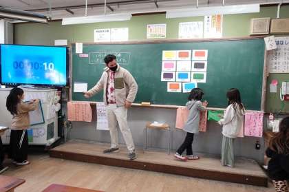 楽しみにしていたブライス先生との授業,色の学習をしました。