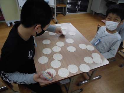 グループにわかれて,神経衰弱をしました。上級生の子が1年生に優しく教えながら活動する様子が見られました。