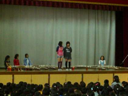 そこで,全校児童が集まる体育館で写真のように,事前に琴の発表会を行いました。