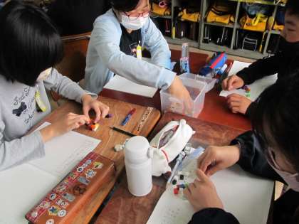 算数では,たてと横と高さの和が等しい直方体と立方体は,かさも等しいのか,1㎤の立方体のブロックを使って調べました。