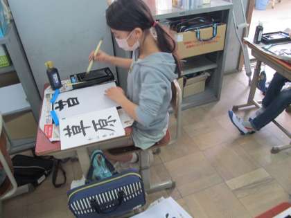 2文字のバランスが難しいと苦戦しつつも,お手本を見ながら,集中して丁寧に書くことができました。