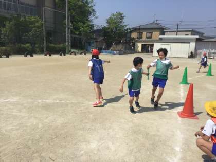 現在体育で「リレー」の学習をしています。久しぶりの陸上競技だったので「いっぱい走れてよかった」と振り返りに書いたり、次の日には「先生筋肉痛になった」と笑顔で報告したりする子がいっぱいいました。
