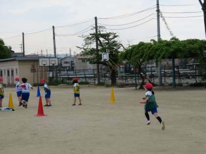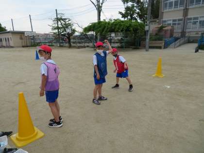 バトンをいかに上手に渡すことができるか,バトンゾーンをいかに上手く使うか,考えながら練習しています。一生懸命走ったり,応援したりしています。