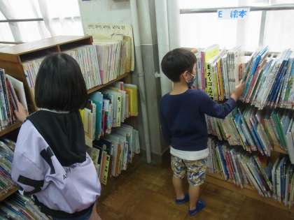 そうぞうよりも おおくの ほんが あることに おどろいているようすでした。