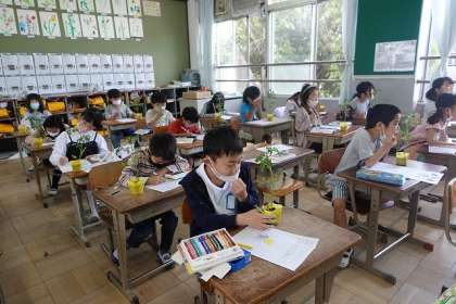 「もうお花が咲いてる。」「茎がチクチクしている。」と
