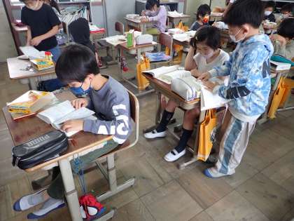 数日前から国語辞典をもってきていた子の中には,気になって読書タイムの時に読んでいる子もいました。