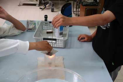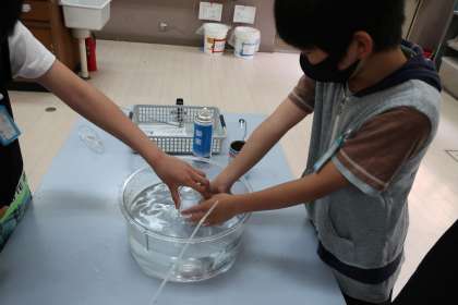 「酸素を集めたびんでは,ろうそくの火がばちばちなっていた!」など,ものを燃やすはたらきのある気体について調べることができました。