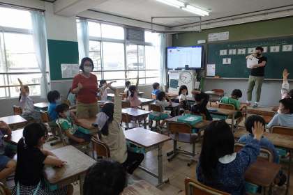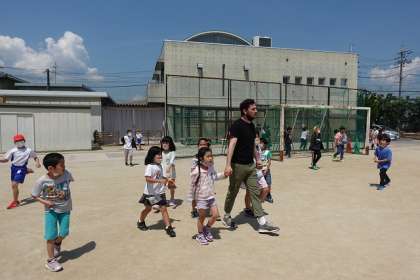 授業終わりには「ブライス先生あそぼう!」と
