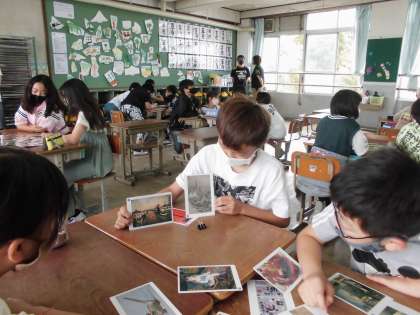 土曜日に休日参観と引き渡し訓練がありました。図画工作の時間には,「アートカード」を使って鑑賞の学習をしました。2枚のカードをマッチングさせたり,絵の中の人物や物になり切って台詞を考えたりして楽しみながら作品のよさを味わいました。