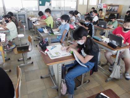 今回はGIGA端末や教科書を使って,季節風について調べました。