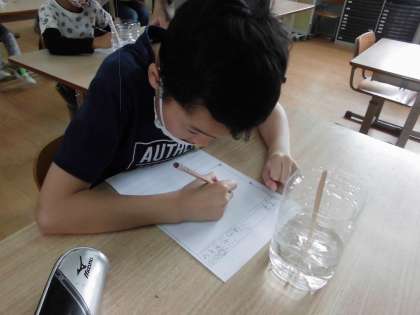 ヤゴの観察をしました。近くでよく見て,いろいろなことに気付いて書いている姿が見られました。
