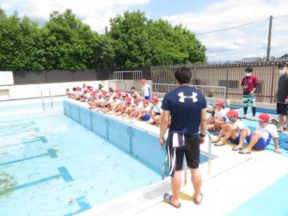 来週から始まる水泳学習に向けて,6年生でプール清掃をしました。プールサイドのマットや排水溝,プールの床などをブラシやたわしでこすり,汚れを取りました。みるみるうちに汚れも落ち,きれいな状態になりました。清掃が終わったあと,やり切った表情をしていた6年生でした。