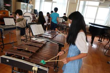 リコーダーや木琴,鉄琴,バスオルガンなど各パートに分かれて,頑張っています!