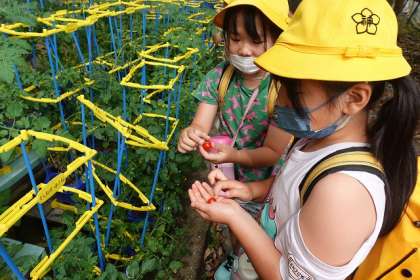 「ミニトマトが赤くなってきたよ」
