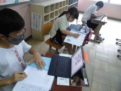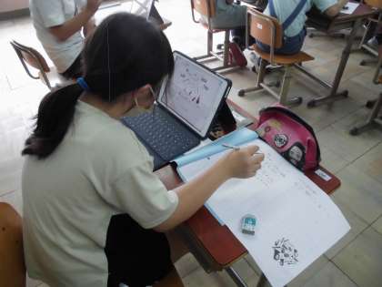 6年生の音楽の交流学習の様子です。音楽を鑑賞して,何の楽器が使われているかを調べました。