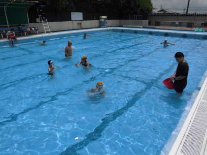 前回よりも少し水位が上がり,ビート板を使って泳ぎの練習をしました。安全に気をつけながら,楽しんでプール学習を進めています。