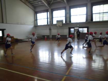 体育でかけっこ遊びをしました。寝ころんだ状態や座った状態から素早く立って走りました。みんな走るのが大好きなので走り終わった後も「まだまだ走れるよ!」と元気いっぱいでした。