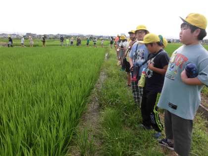 田んぼまで稲の成長を観察しに行きました。5月の時期と比べるとだいぶ大きくなっていました。収穫の時期が楽しみです。