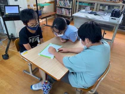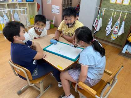 大空クイズ大会をして,1学期を振り返りました。クイズ番組のように4チームにわかれて対戦し,大盛り上がりでした。