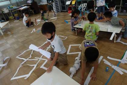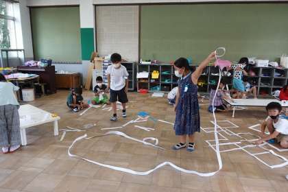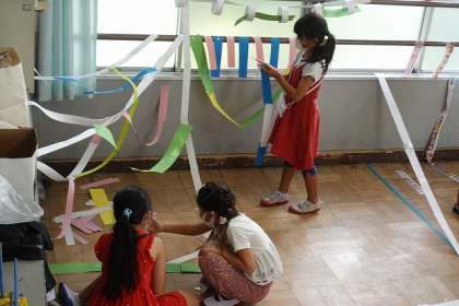 様々な種類の短冊をつなげたり,つるしたりしました。
